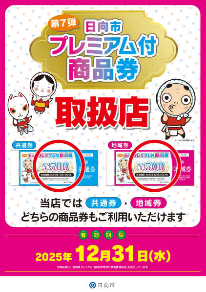 第7弾日向市プレミアム付商品券利用店舗一覧←(クリック) (2025年10月1日 […]